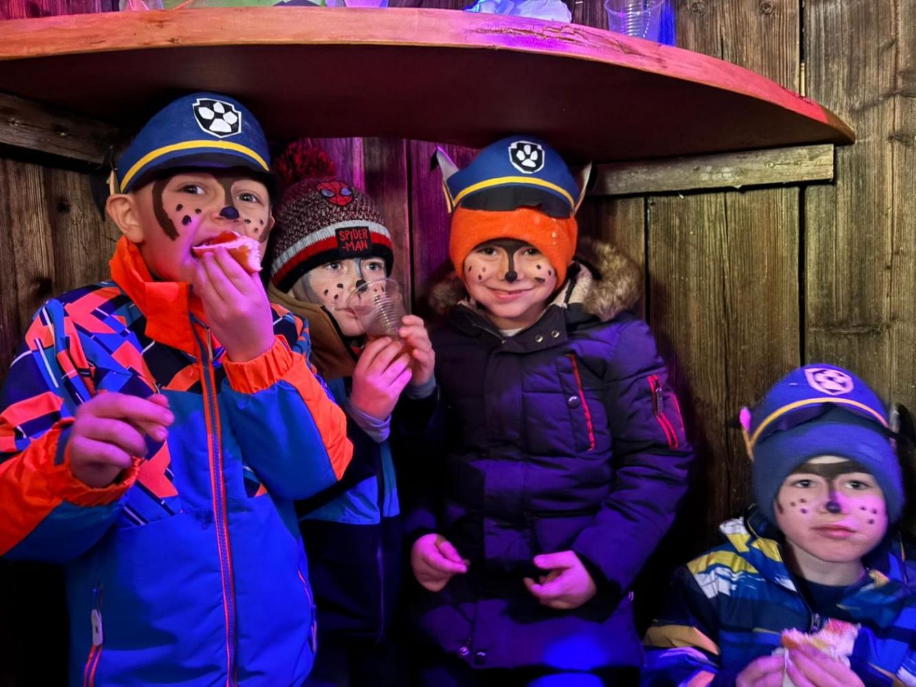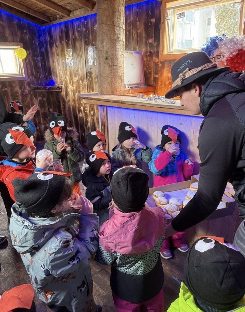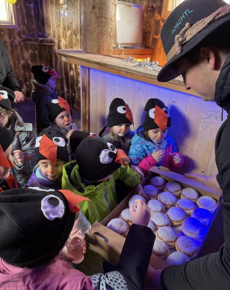 Am Faschingsdienstag wurden alle Kinder vom Fasnachtsobmann Andreas Trenkwalder auf die Wagen eingeladen. Dort durften die selbstgebauten Wagen der Lausbuam, Rabeler, Musibanda und Zwiederwurzn inspiziert und angeschaut werden. Ein Blick nach innen wurde uns auch gewehrt. Zudem hatten wir unseren eigenen „Wogn“ dabei und präsentierten ihn stolz den Mitgliedern des Fasnachtsverein. Schon Wochen zuvor kam immer wieder das Thema „Fasnacht“ bei den Kindern auf woraufhin gemeinsam beschlossen wurde mit den Kindern kreativ zu werden. Kurz darauf haben die Kinder schon fleißig gewerkelt und anschließend den „Kindergarten-Wagen“ bunt bemalt. In den Wagen angekommen wurde zu stimmungsvoller Musik getanzt, gelacht und gefeiert. Zum krönenden Abschluss bekamen die Pinguine, Katzen, Astronauten und die Hunde von Paw-Patrol eine Stärkung spendiert. Faschingskrapfen und „Saftl“ wurden schnell zum Highlight des Tages. Wir bedanken uns recht herzlich bei Obmann Andreas Trenkwalder und dem gesamten Fasnachtsverein für diesen tollen Einblick der „Oberhofer Fosnacht“.