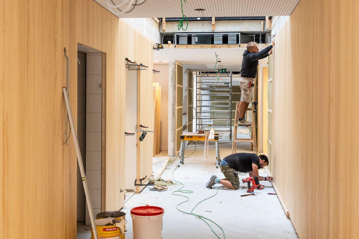 Der Baufortschritt am „Haus der Kinder“ ist mittlerweile auch im Innenausbau deutlich sichtbar.