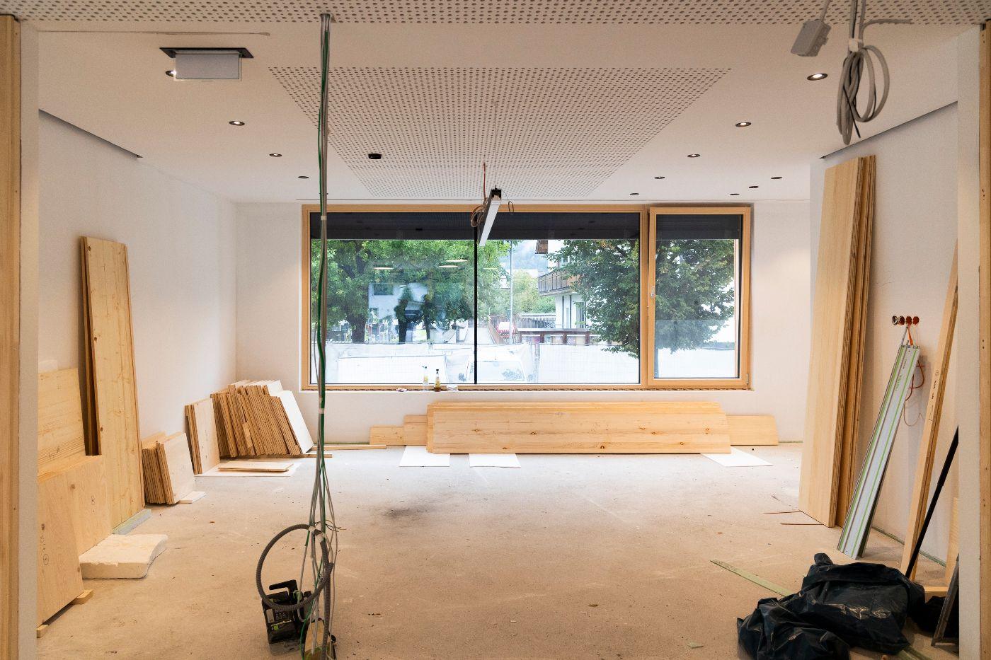 Die Arbeiten am „Haus der Kinder“ schreiten weiter zügig voran. Anfang Juni wurde im Neubau mit dem Ausheizen des Estrichs begonnen. Im alten Gemeindeamt wurde bereits mit dem Fenstertausch begonnen.